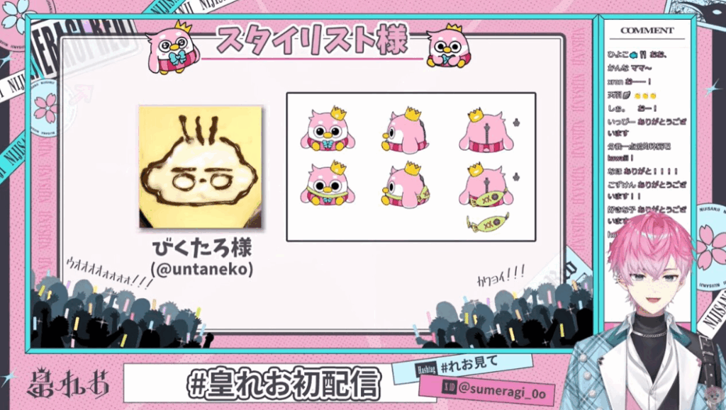 皇れおさんは、キャラモチーフを「桜とペンギン」としています。